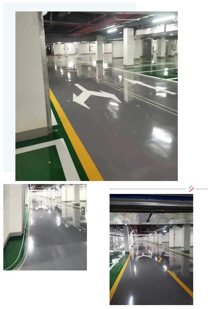 紅塔大廈地下車庫項(xiàng)目采用我公司漆、環(huán)氧中層漆、環(huán)氧自流平面漆以及聚氨酯超耐磨面漆等產(chǎn)品,我公司環(huán)氧地坪漆具有耐強(qiáng)酸堿、耐磨、耐壓、耐沖擊、防霉、防水、防塵、止滑以及防靜電、電磁波等優(yōu)良特性,顏色亮麗多樣,清潔容易。聚氨酯超耐磨地坪漆具有更耐磨,抗壓,強(qiáng)度高,可適用于室外的優(yōu)點(diǎn)。
